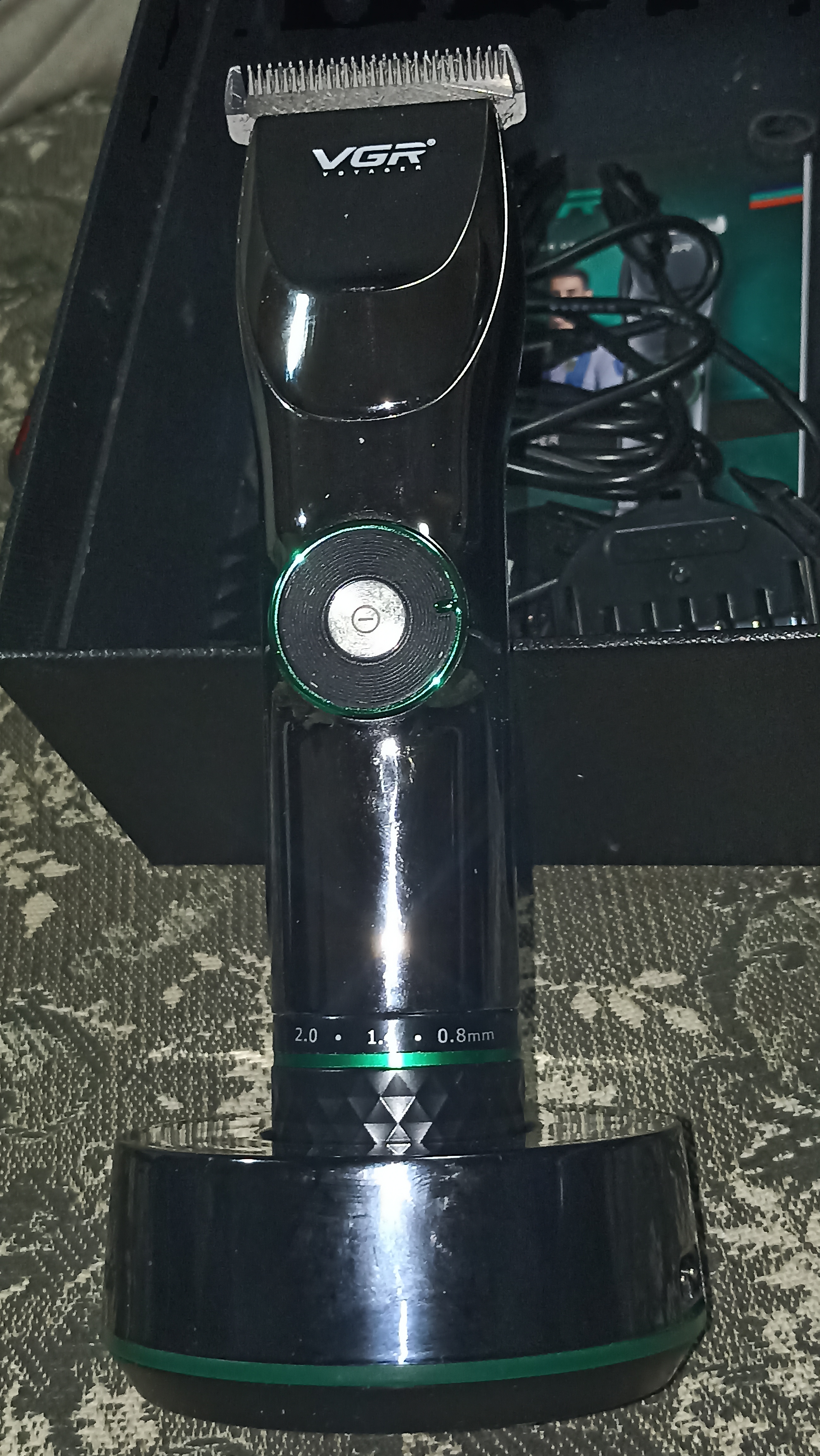 Стрижет чисто. Насадки начинаются с 1.5мм. без насадок 0.8 мм , ей и бреюсь. Заряжать можно и на подставке и напрямую в машинку провод воткнуть. Аккумулятор мощный. Машинка у меня 2 месяца, я ещё не заряжал. Регулируется скорость, зачем непонятно.