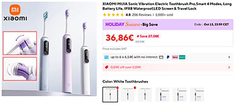 Электрическая вибрационная зубная щетка Xiaomi Mijia Sonic Vibration Pro. Четыре режима чистки, адаптация под пользователя, интеллектуальный дисплей, заряжается через порт Type-C, одного заряда хватает до полугода использования.