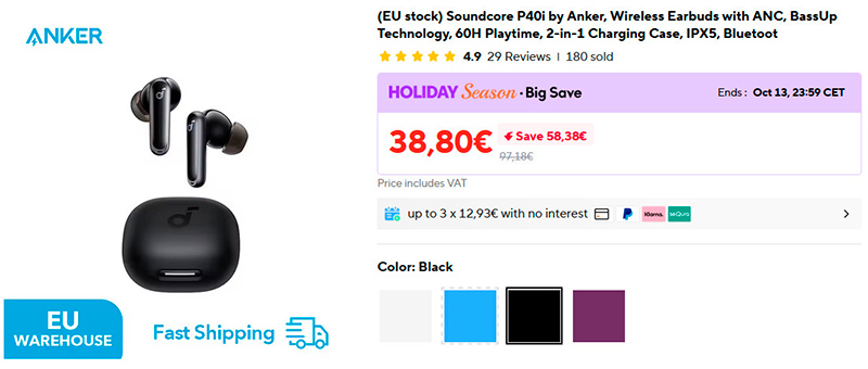 Недорогие TWS-наушники Soundcore by Anker P40i. При невысокой цене у них: активное шумоподавление, расширенный бас, поддержка беспроводной зарядки кейса, мультипоинт. От одной зарядки работает до 12 часоа, с подзарядкой от кейса - до 60 часов, 10 минут зарядки дают 5 часов работы. Шесть микрофонов для качественной работы в режиме гарнитуры. Четыре варианта цветов.