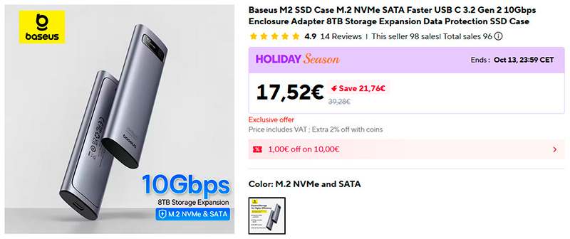 Интересный корпус для SSD формата M.2 от Baseus