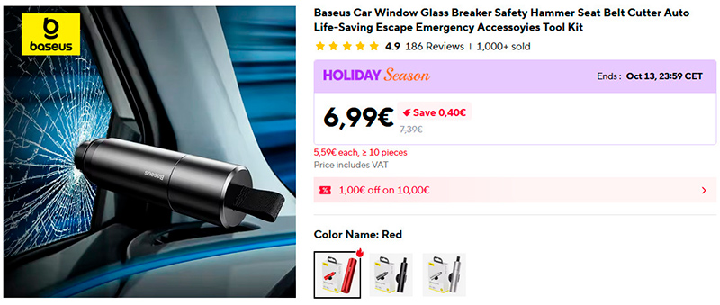 Средство безопасности, которое должно быть в каждой машине: устройство для аварийного разбивания стекла машины (разобьет даже под водой), снабженное ножом для разрезания заклинившего ремня. Лучше бы такое никогда не понадобилось, но если вдруг что - может спасти жизнь.