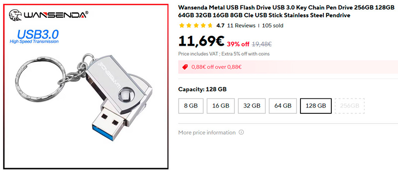 Флешка-брелок, чтобы носить с собой электронные копии важных документов (обязательно архивируйте их с паролем, который вы не забудете - для безопасности). В наличии емкости от 8 до 128 ГБ.