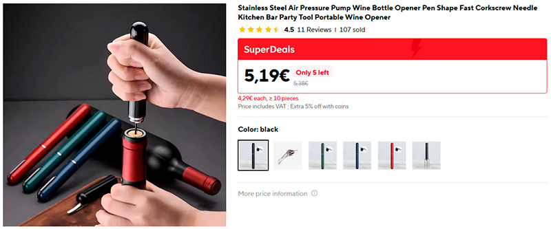 Любителям вина - пробочник для особо неуступчивых пробок. Иглой с небольшим отверстием протыкаете пробку, помпой накачиваете воздух, пробка вылезает сама под давлением. У меня есть такая штука - несколько раз выручала.