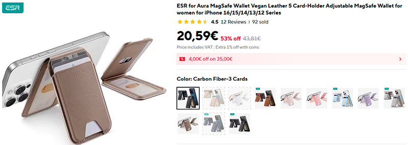 Любопытная штука - магнитный картхолдер под MagSafe. Его можно использовать как отдельный кошелек для банковских карт, прав и удостоверения личности, при этом он может примагничиваться к смартфону и заодно выступать в роли подставки с настраиваемым углом.