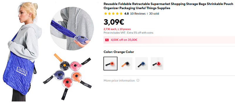 Очень вместительная сумка-шоппер (раньше такое называли авоськами), которая сматывается в маленький пластиковый чехол и легко поместится даже в кармане.