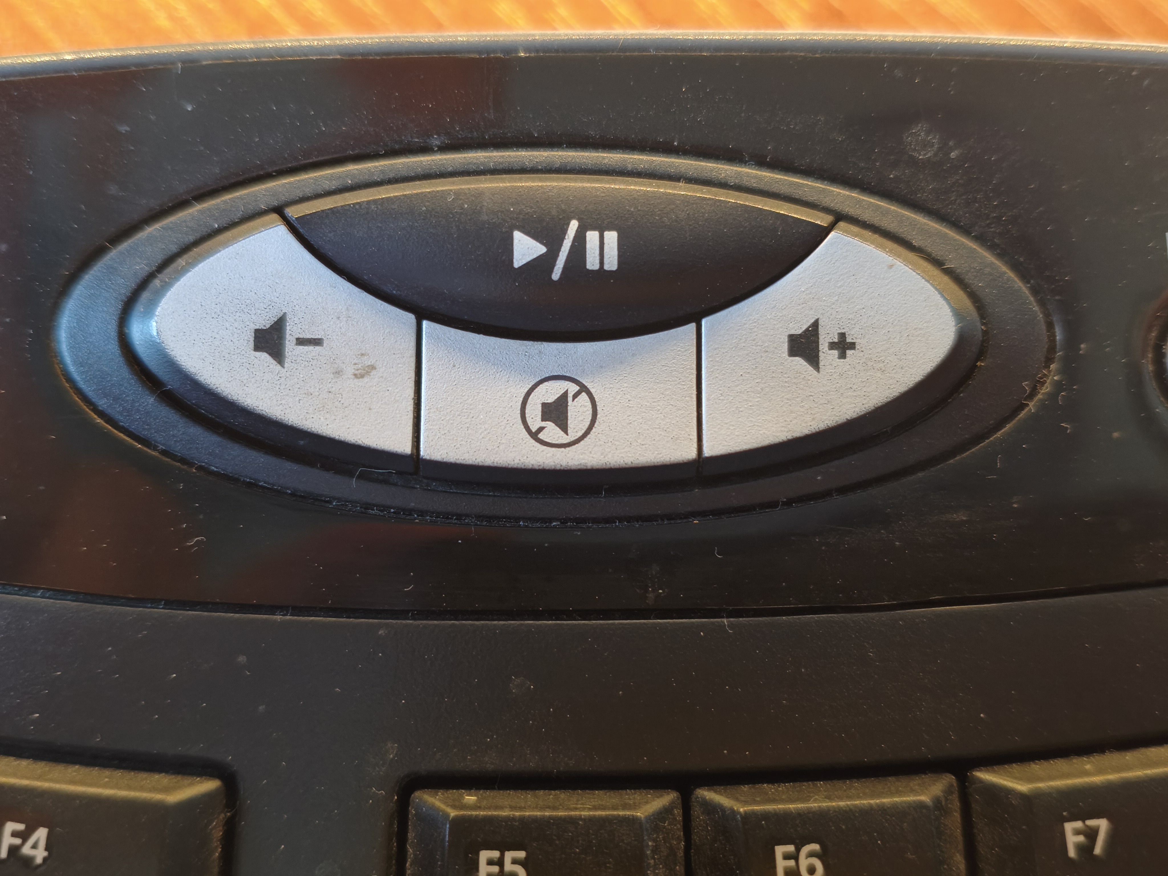 Я имел в виду, что здесь нужно сочетание клавиш FN + F2 убавить и FN + F3 прибавить громкость. На других моих клавиатурах такой заморочки нет. На ноутбучной просто F2 нажимаю, чтобы убавить, на Макинтошной F10, у Майкрософт отдельная кнопочка как у вас на фото.