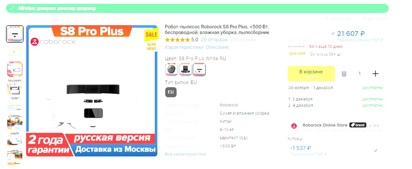 С купоном на 691рубль который берется на странице цена становится не прилично низкой - 568 ₽