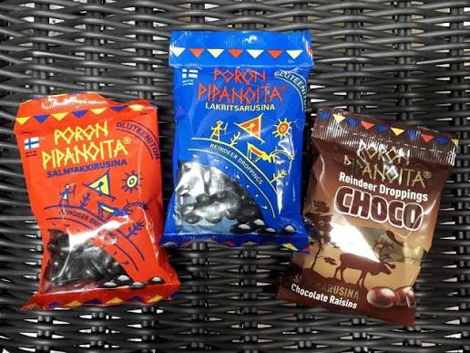 Не придумали, а украли. Этих reindeer poop в виде шоколадных драже полно на любой рождественской ярмарке. А в Скандинавии они лакричные к тому же, для большего соответствия.
