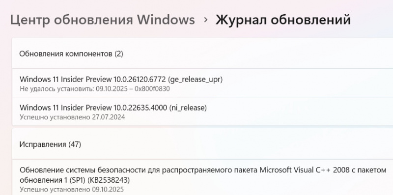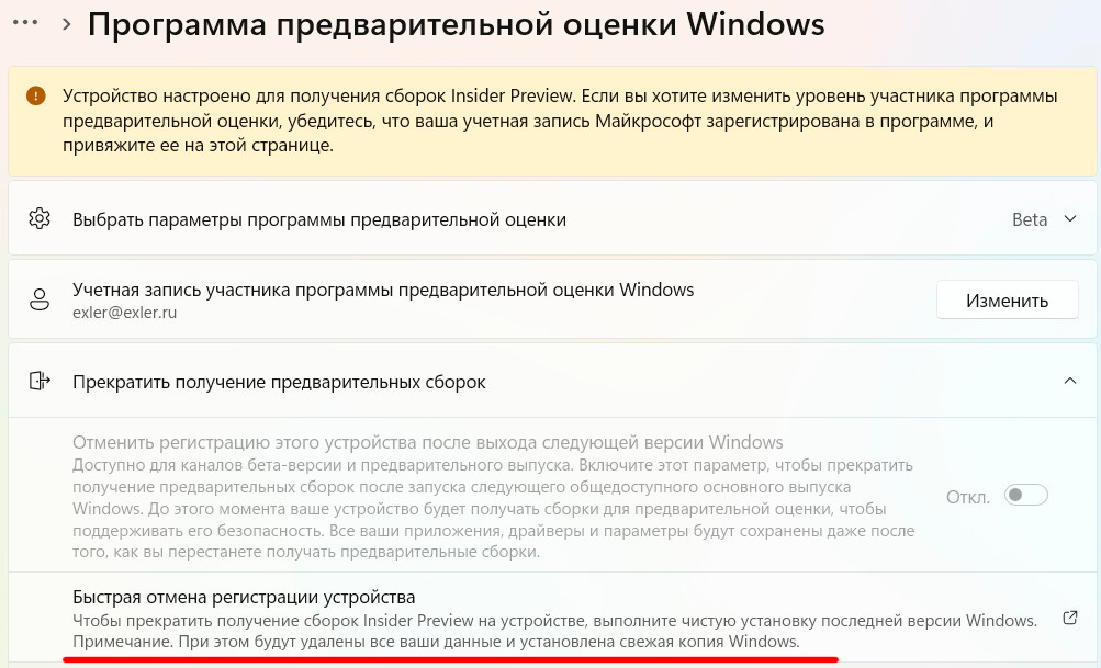 В какой-то момент зачем-то присоединился к "Программе предварительной оценки Windows" (Windows Insider Program) - хотелось побыстрее получить одно обновление с интересными возможностями. Ну и потом многократно об этом пожалел. Потому что Windows каждую неделю стала скачивать и предлагать к установке Windows 11 Insider Review, а после запуска процесса инсталляции, система доходила до какого-то процента обновления, после чего перезагружалась, писала, что откатывает назад все обновления, а после перезагрузки было написано, что обновление установить не удалось. И так повторялось неоднократно.