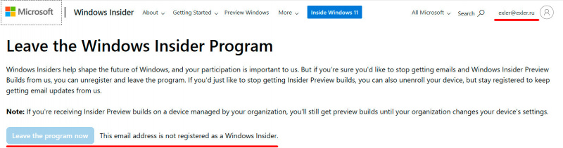 Я попытался выйти из этой программы на сайте MS (как же там все криво работает!), но на сайте меня вообще не признали - вы чьих, говорят, будете.