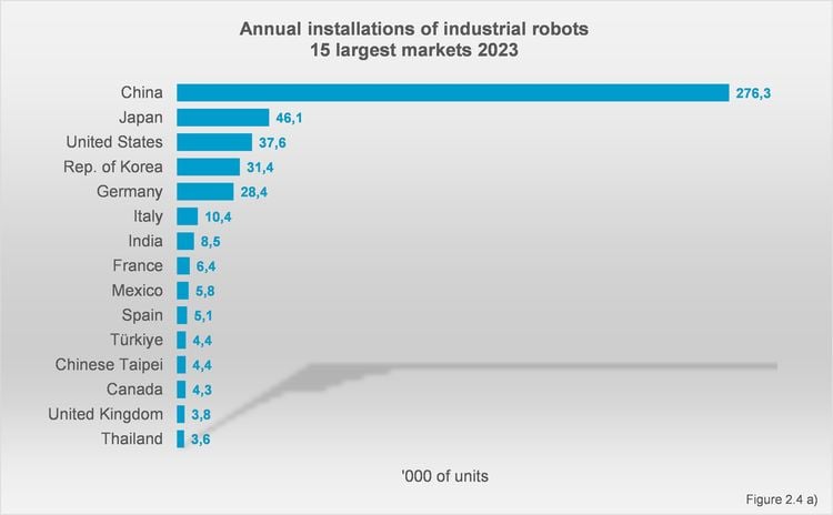 В прошлом году они установили новых 276 тысяч промышленных роботов, что составило 54% всех установленных новых промышленных роботов. ifr.org