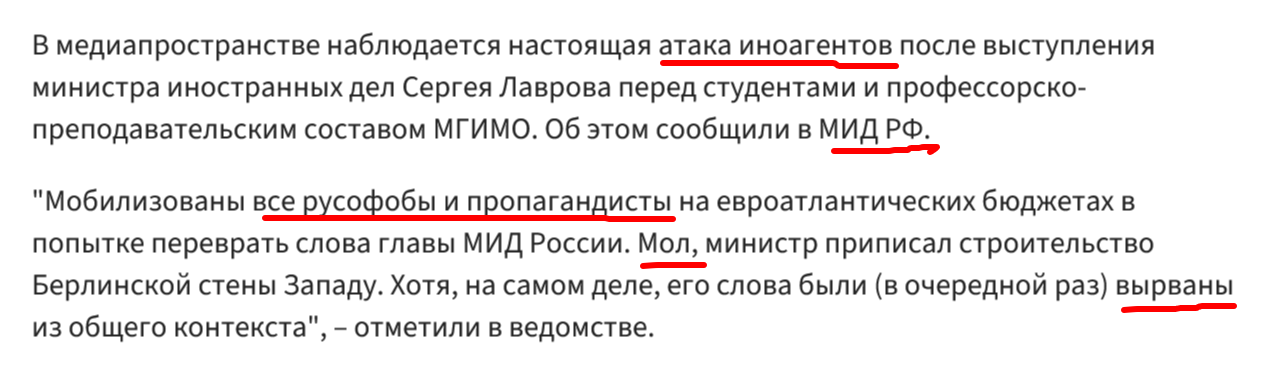 Ровно такая же "логика" будет и в отношении слов Лаврова: