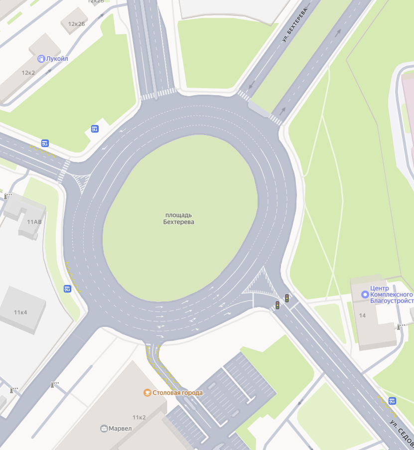 С другой стороны, для водителей это сложнее, чем обычный перекресток со светофором, где можно ехать прямо или сделать один поворот. Требует больше внимания и усилий.