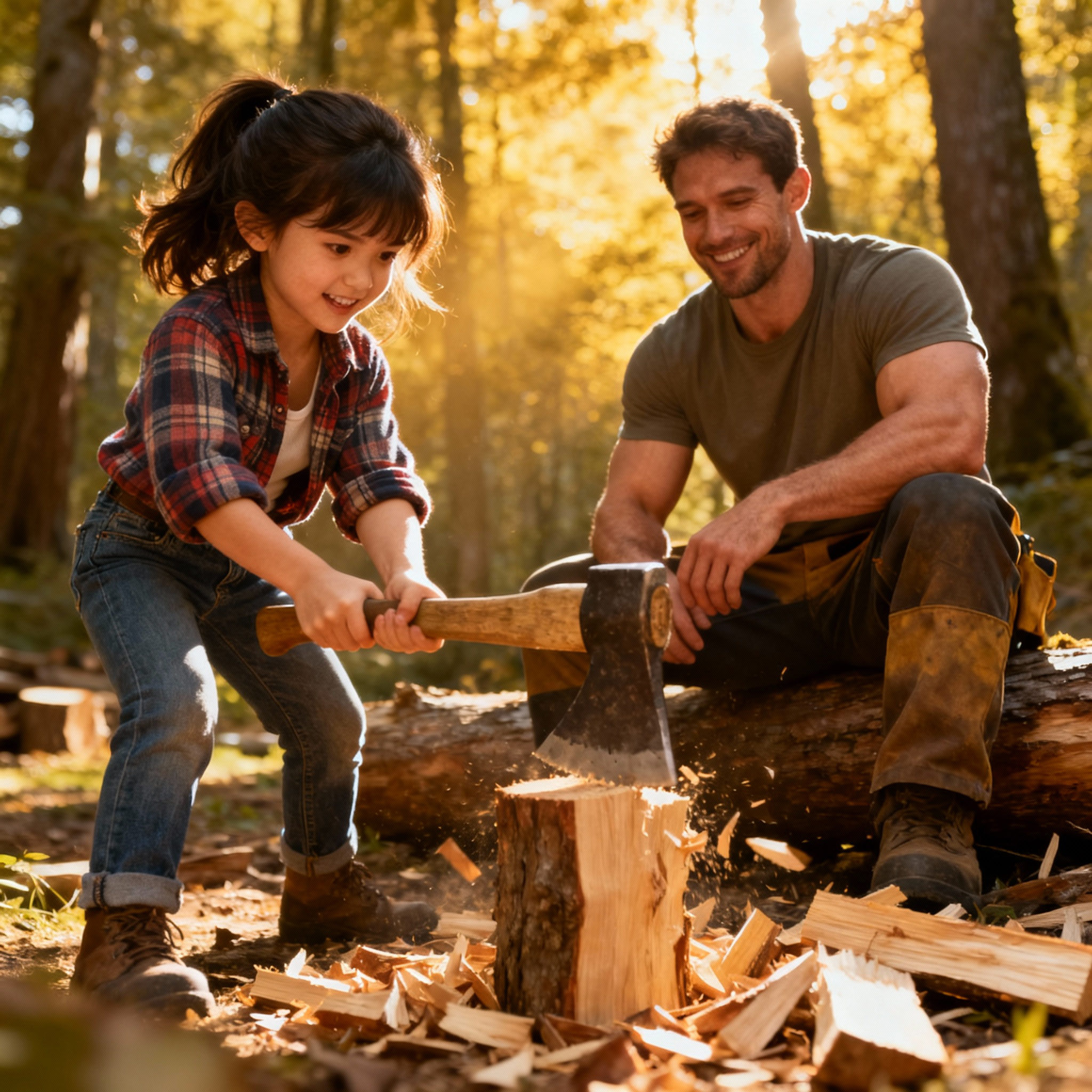 Девушка на видео неправильно дрова колет, нужно на торец ставить - удар концентрированнее получается.