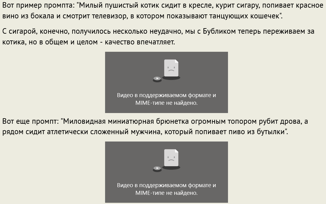 Проблема только в том, что видео нафиг не нужно, даже если там 1 ошибка или артефакт, воспринимается как мусор и ни в каком реальном применении такое не прокатит. А зная особености систем изнутри, времени чтобы добиться прям годного качества, да еще и при нормальной продолжительности, хотя бы 20-30 секунд уйдет чуть ли не на порядок больше, чем 2-3 года. Можно конечно пробовать генерировать кусочками и монтировать, но там вылазят свои косяки с тем, что кусочки точно не будут повторять сеттинг на 100% и снова на выходе клоунада.