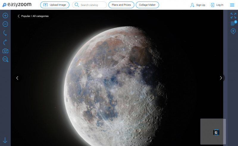 Скачать изображение в полном разрешении не дают, но там на самом сайте можно увеличивать отдельные участки до оригинального разрешения. Интересно, можно ли там увидеть места посадки американских "Аполлонов"? Наверное, да, если знать где искать.