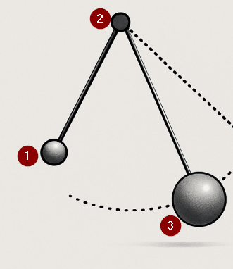 А вот если подвесить за точку 3 (или 1) — начинается динамический хаос: малейшее изменение в начальных условиях полностью меняет траекторию.