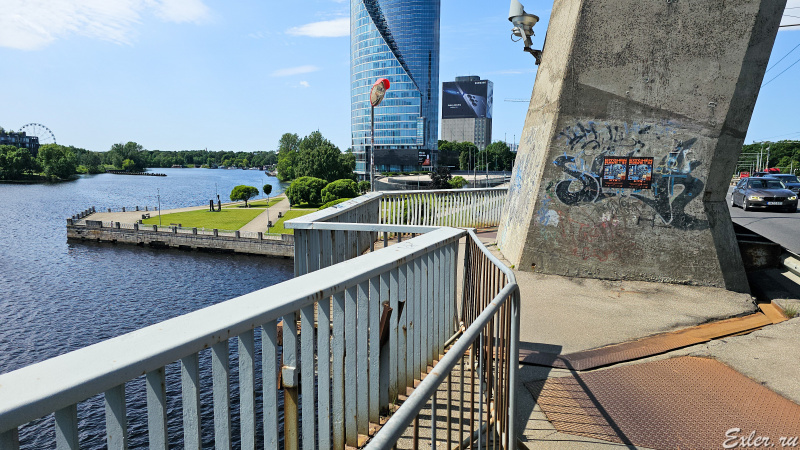 Вопрос. Вантовый мост в Риге. От перил на расстоянии где-то полуметра поставлены вот такие железные заграждения, причем они приварены намертво. На черта? Тем более что они изрядно мешают пешеходам, велосипедистам и самокатчикам, которых здесь немало.