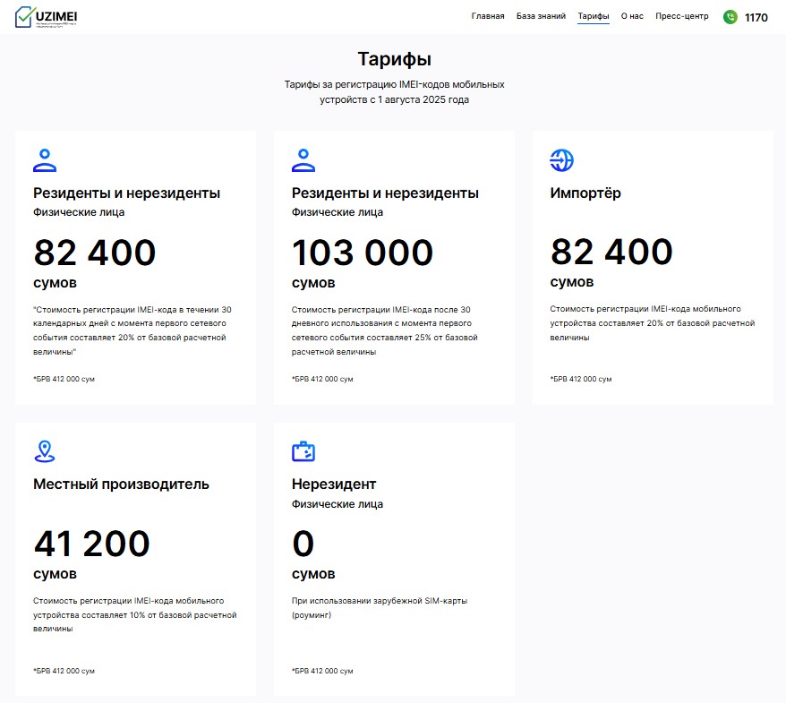 в Узбегистане регистрация одного имей стоит около $6, если зарегистрировать сразу по приезду и внести телефон в таможенную декларацию.