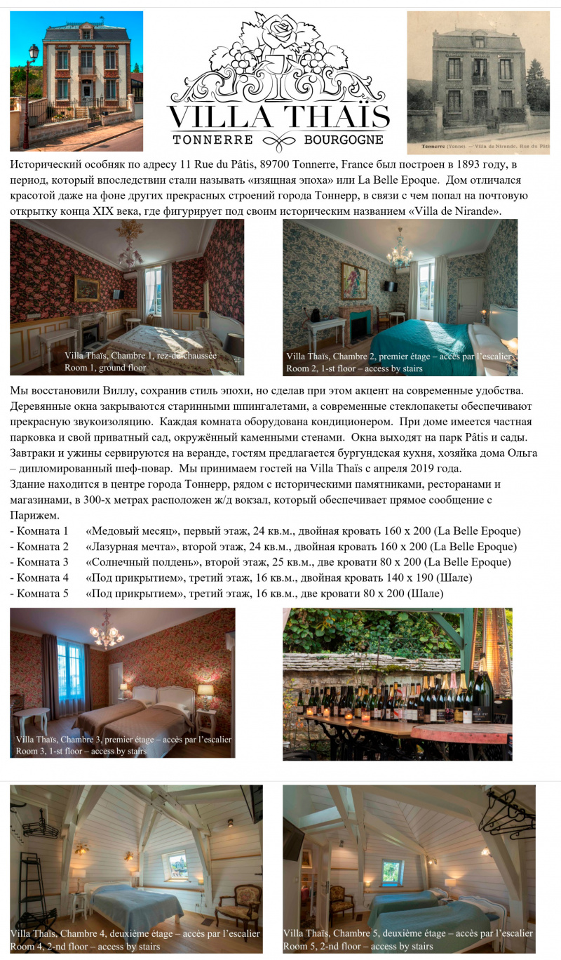 Координаты для связи, для различных уточнений, для бронирования - писать на почту Юрию villatonnerre@gmail.com, связываться через его Фейсбук или в Телеграм "Villa Thais Tonnerre" (@villathais). Если есть какие-то вопросы ко мне, то писать на мой обычный адрес toffler@gmail.com.