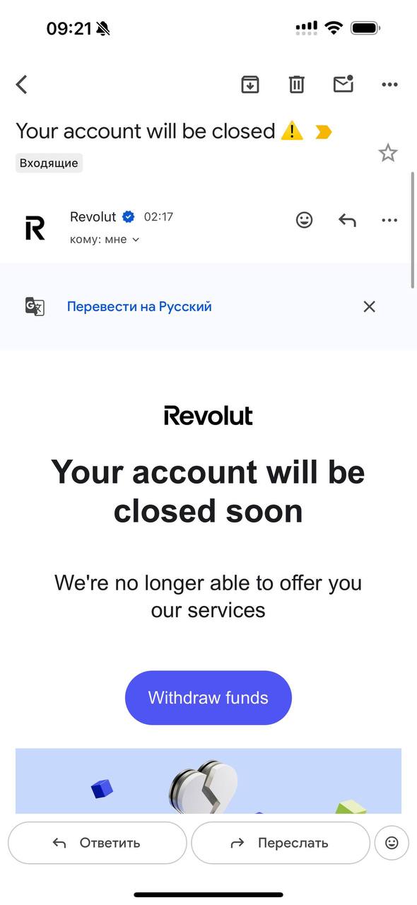 🤷 Россиянам, у которых нет ВНЖ или гражданства стран ЕС, в ночь на субботу стали сообщать о закрытии счетов в Revolut
