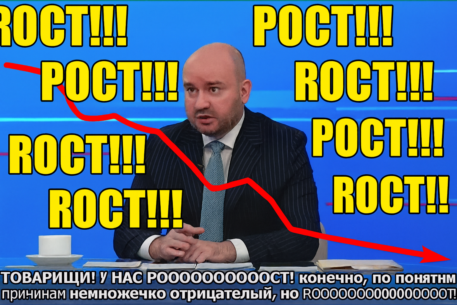 Это самарский губернатор Вячеслав Федорищев. Рассказывает, как все хорошо в экономике - рост, рост, всюду единорост. Правда, рост отрицательный, но рост же, правильно?