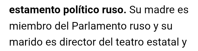 Su madre es miembro del Parlamento ruso y su marido es director del teatro estatal