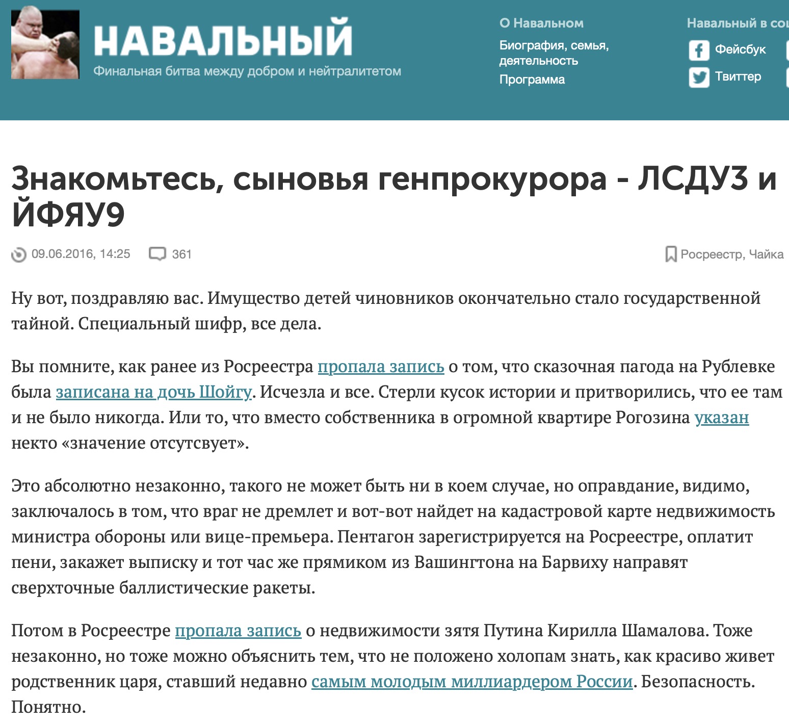 В статье допущена забавная ошибка. Там написано про Собчак "Ее мать является членом российского парламента, а отец — директором государственного театра и ведет колонку в одном из основных пропагандистских интернет-СМИ Кремля". Очевидно, что "отец" - это ее муж Богомолов, который, кстати, сейчас является директором двух государственных театров, а не одного.