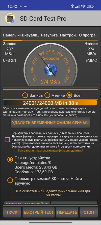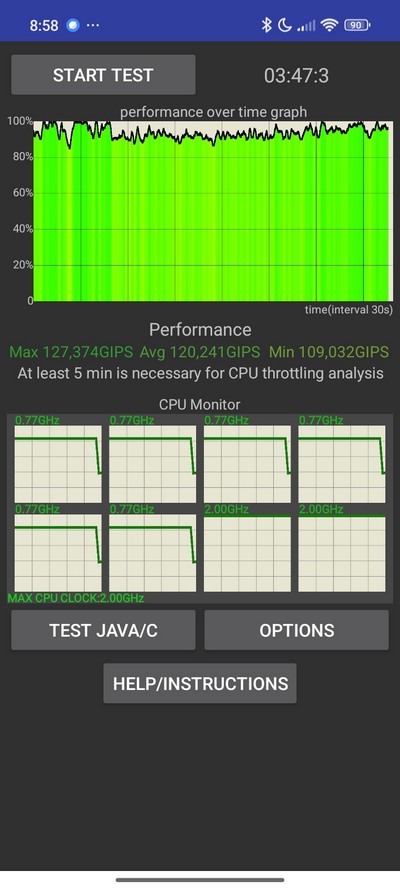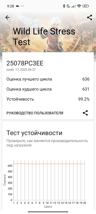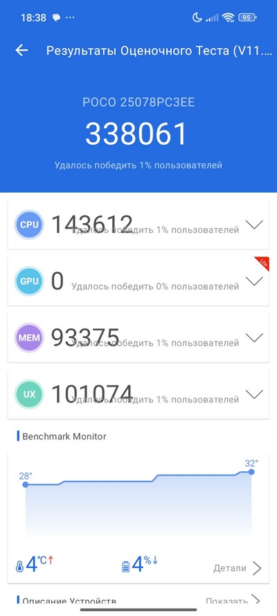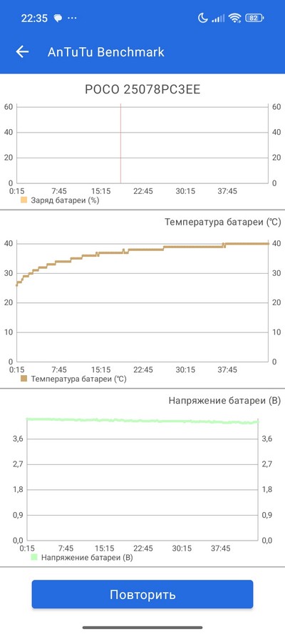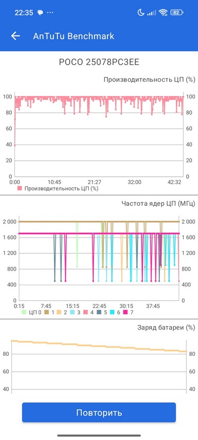 Синтетический тест PCMark. Отличный показатель, смартфон очень экономно расходует энергию.