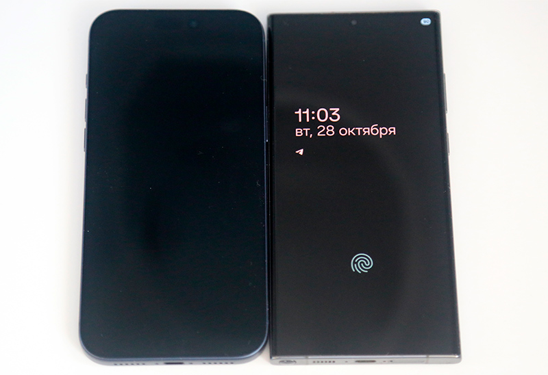 Ну и вот эта модель (она слева) рядом с моим Samsung Galaxy S23 Ultra.