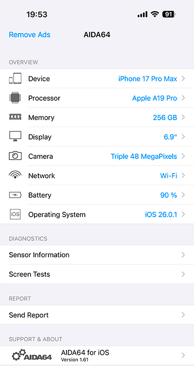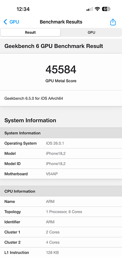 Процессор: Apple A19 Pro (3 nm), Hexa-core (2x4.26 GHz + 4xX.X GHz)