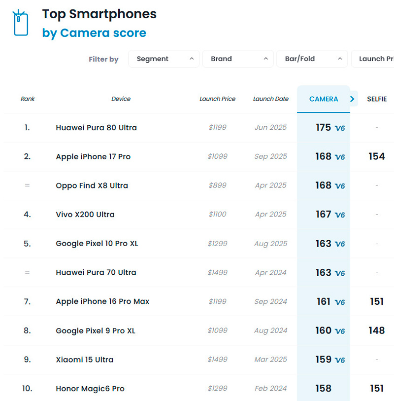 DXOMark поставил камеру этой модели на второе место из десяти (там, правда, iPhone 17 Pro, но у него точно такой же набор камер).