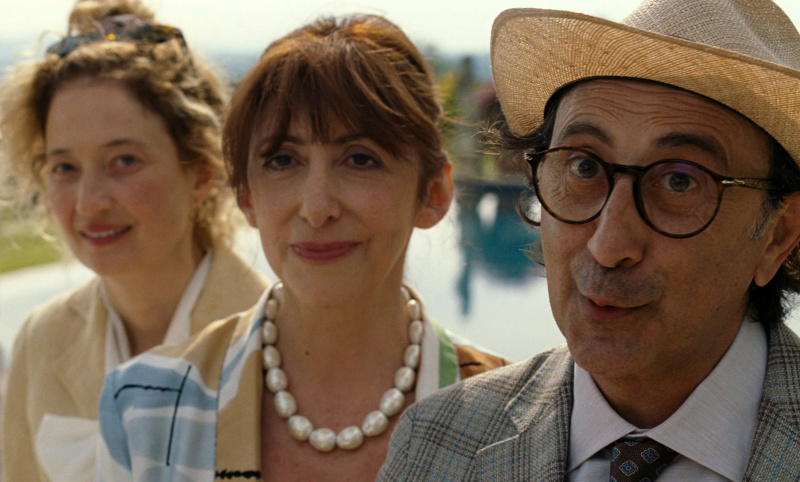 Разумеется, раз Джей решил немедленно лететь в Париж, то вместе с ним на частном самолете отправится и вся его основная команда: агент Рон, публицистка актера Лиз (Лора Дерн), стилист и парикмахер Кэнди (Эмили Мортимер), ассистентка Мэг (Таддея Грэм), охранник и визажистка.