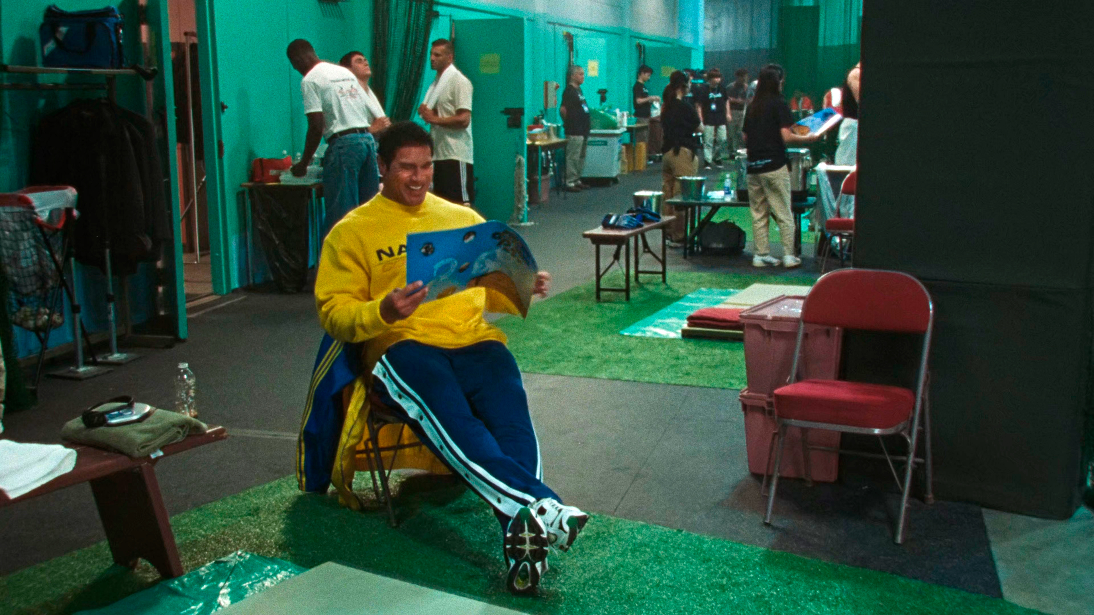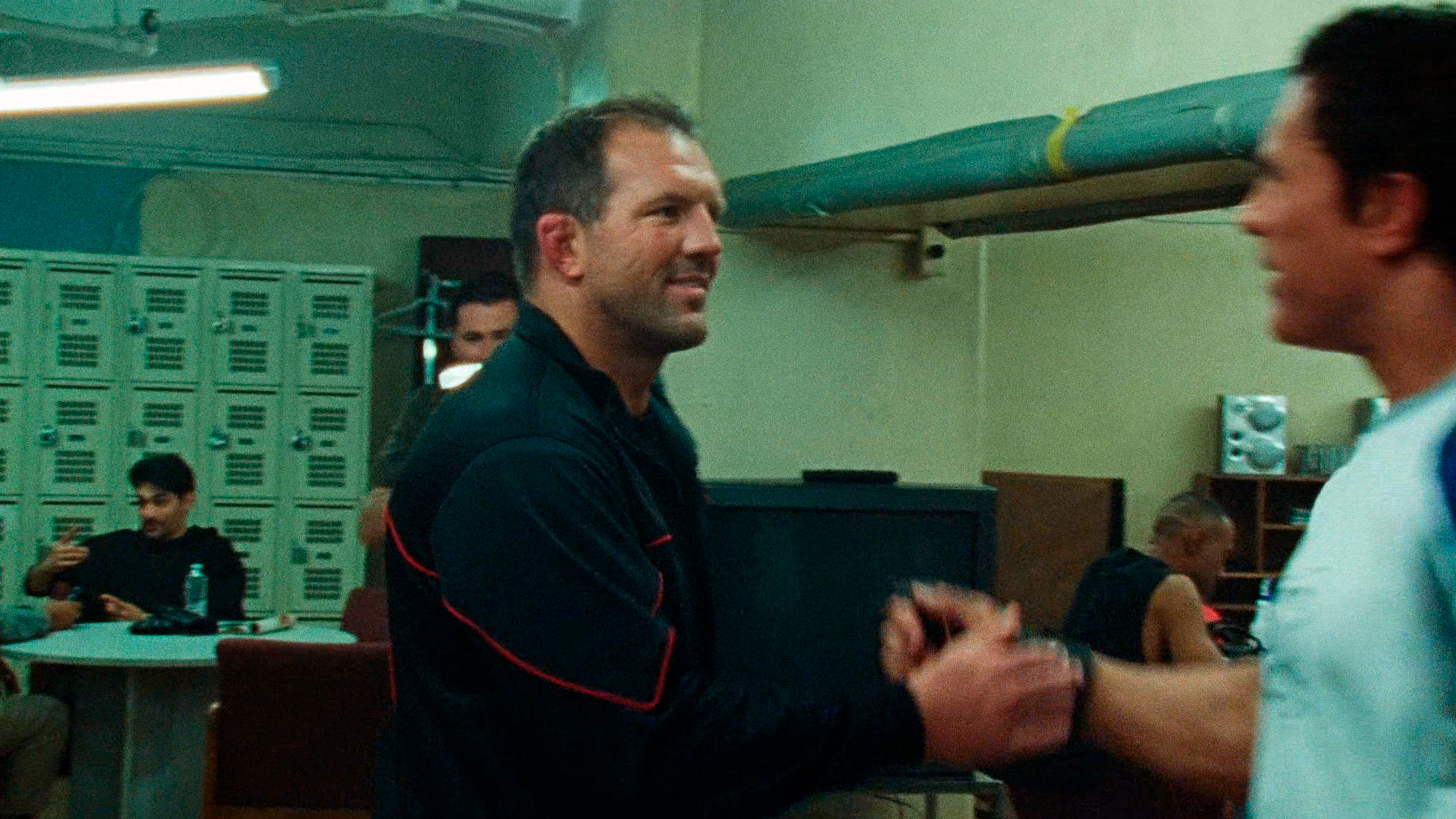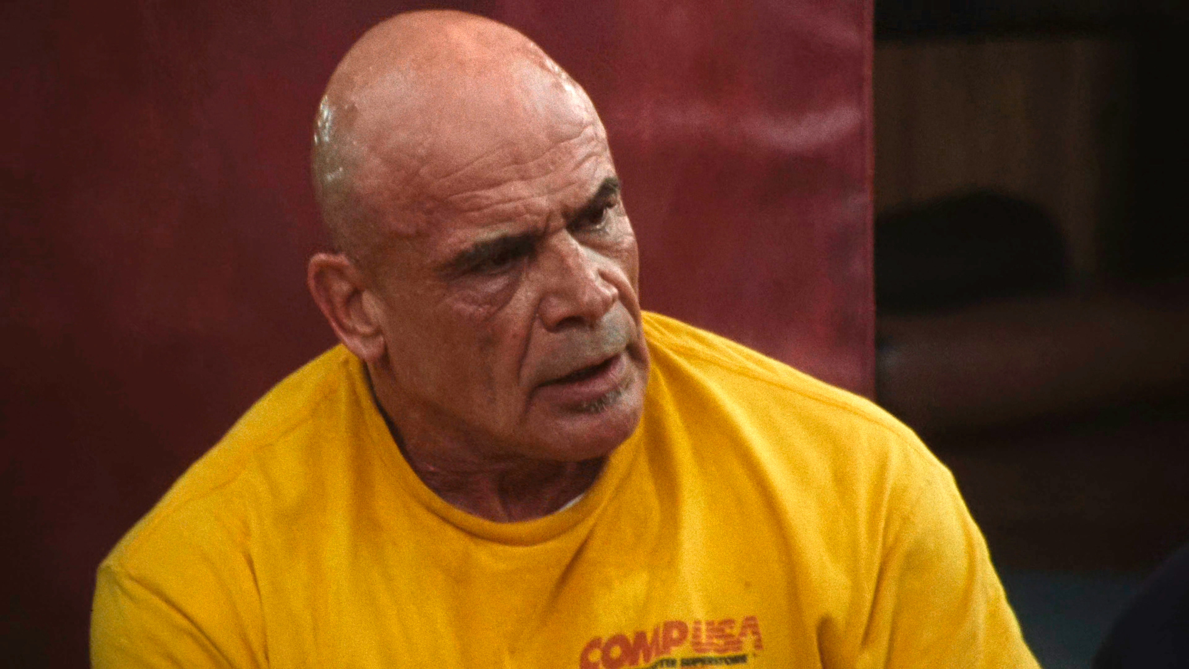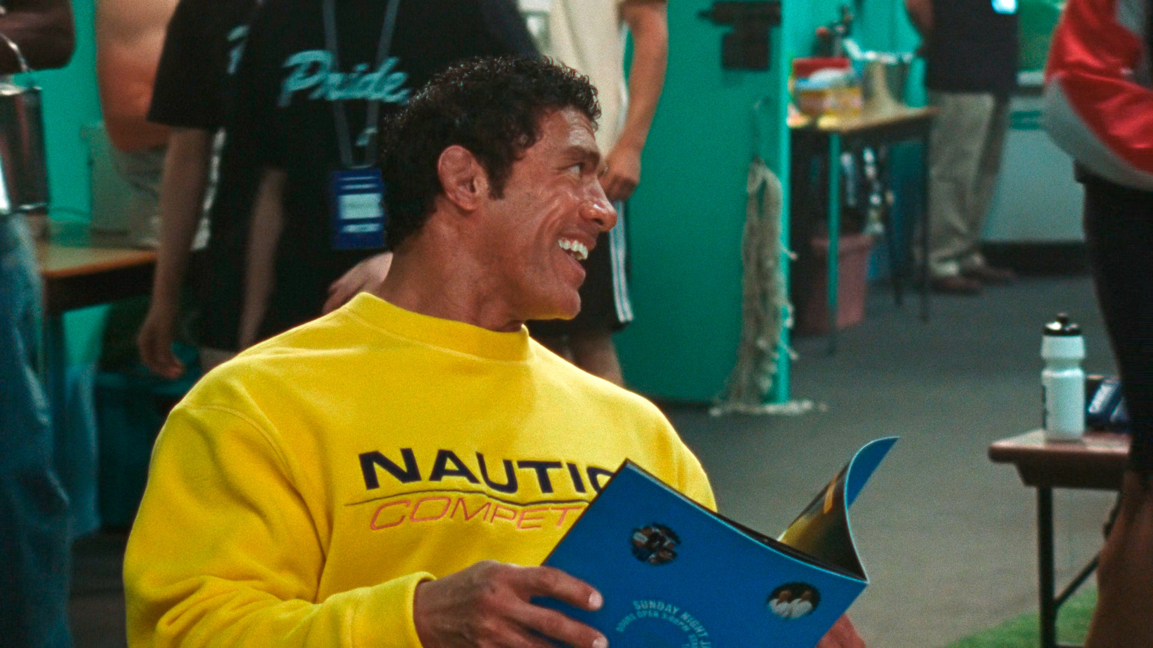 Марк Керр помогает Дуэйну Джонсону готовиться к роли. (В реальности Джонсон всего на четыре года младше Керра, а в фильме играет его тридцатилетнего, но мы не будем к этому придираться, не в этом дело.)