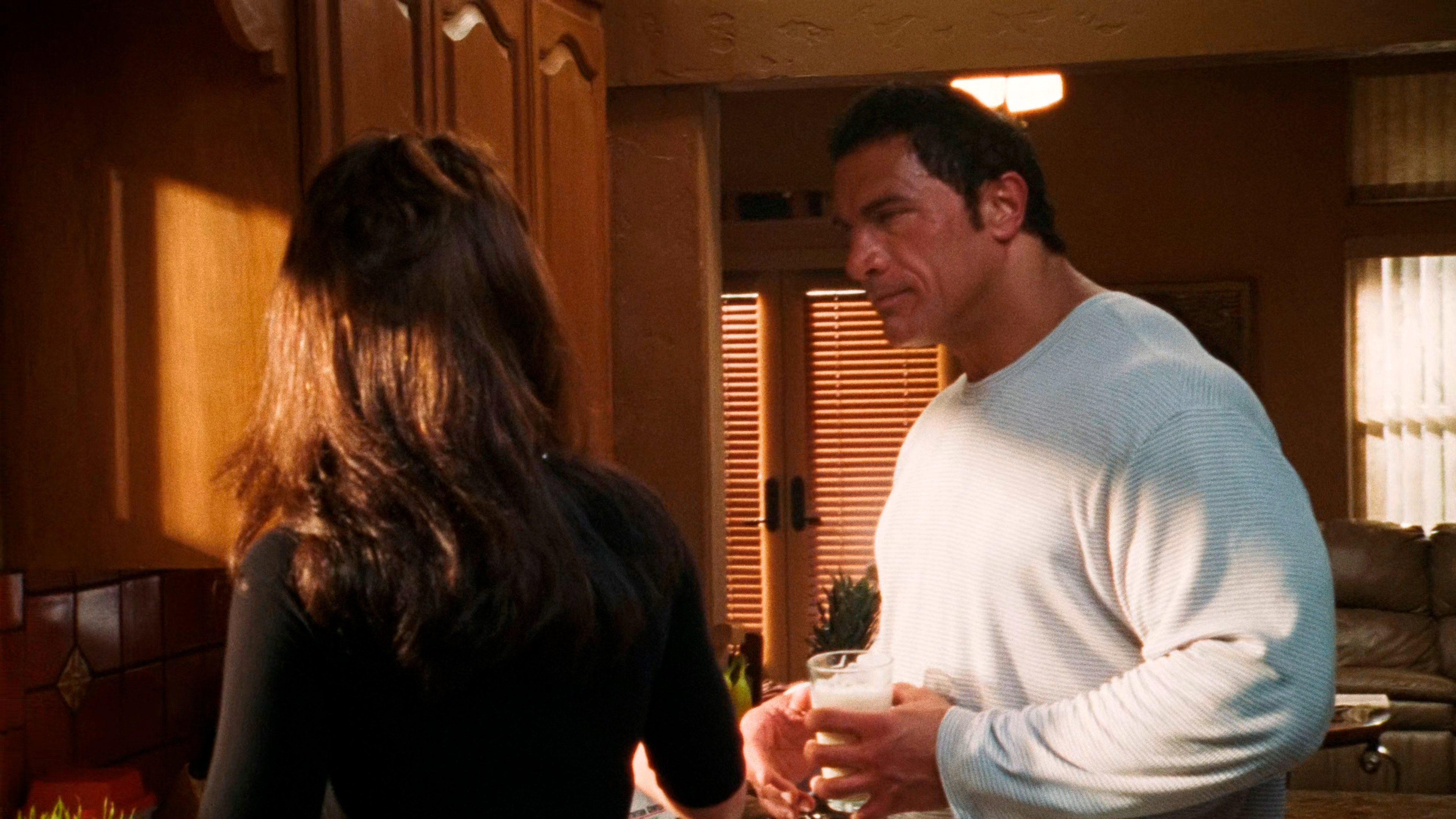 Надо сказать, что и сам Дуэйн, и гримеры проделали огромную работу по превращению Джонсона в Марка Керра. Кроме работы над физической формой, Дуэйн хорошо изучил походку Керра, его манеру говорить, его мимику, его приемы. И он на экране - практически неузнаваемый. Я читал интервью с сыном Марка Керра Брайсом, и тот восторгался тем, насколько Джонсон в картине действительно похож на его отца, просто на удивление.