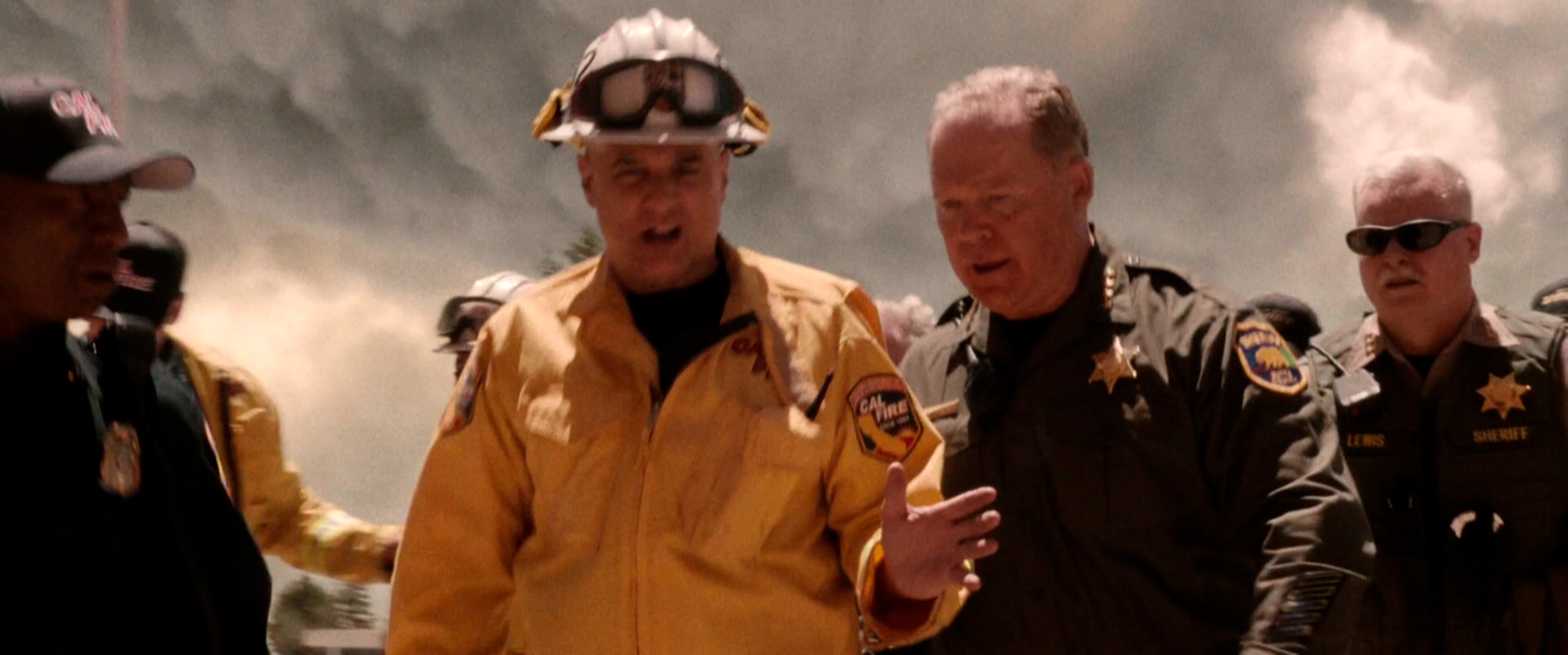 Однако на фоне всяких неурядиц у Кевина и массы других людей начинаются неурядицы совершенно другого масштаба, и вот это в картине показано очень здорово. Здесь рассказывается не только история того, как школьный автобус Кевина пытался прорваться в сборный пункт, здесь также показывается общая картина того, что привело к такому разрушительному стихийному бедствию: засуха и сильный ветер, преступная халатность электрической компании PG&E, чьи провода стали источниками возгорания, проблемы с системами оповещений, непродуманность городской инфраструктуры и эвакуационных маршрутов, сбои в работе экстренных служб.
