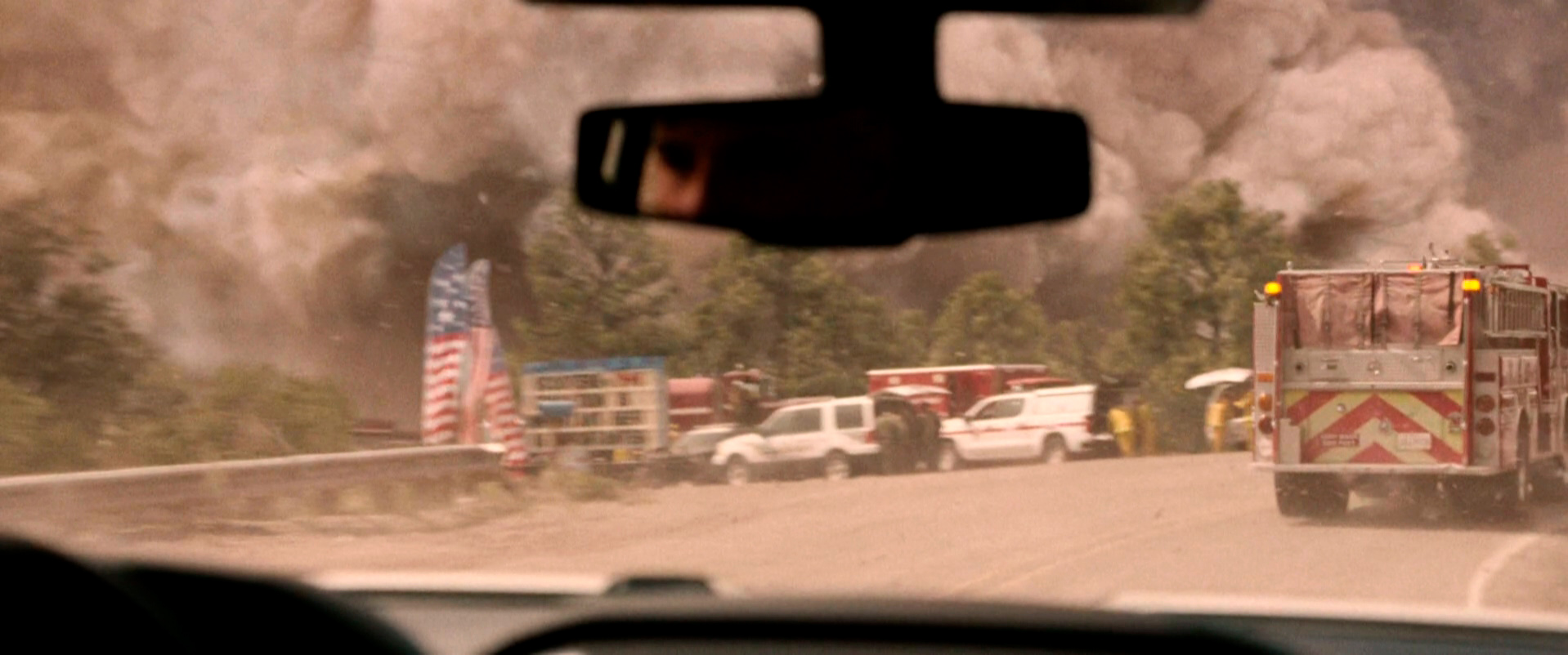 В итоге они потеряли время, одна дорога из-за пожара оказалась перерезанной, на другой - столпотворение машин, а когда Кевин пытается проехать третьим, довольно опасным путем, перед ними возникает угроза попасть в огненную ловушку, откуда уже не выбраться.