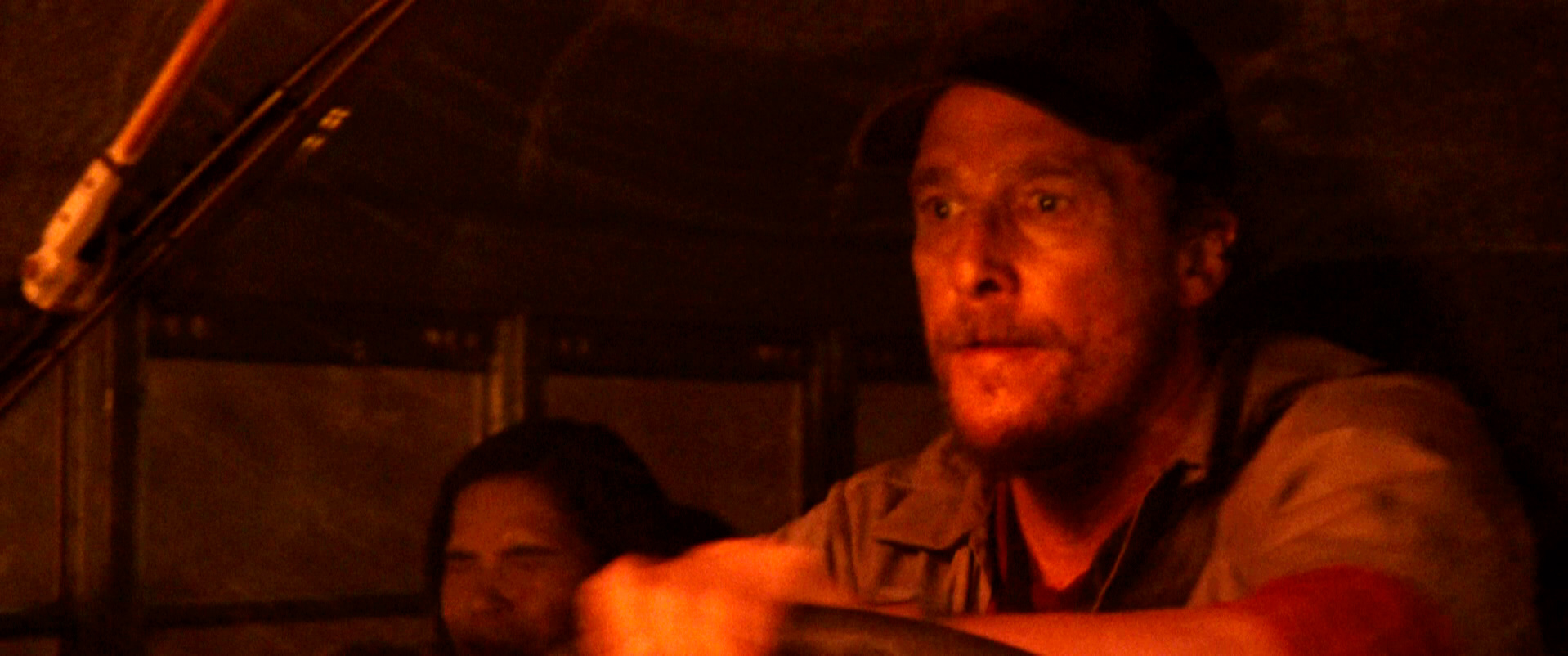 МакКонахи показывает, что в эти ужасные минуты у Кевина просто не было времени на рефлексию. Ему некогда было думать про собственные проблемы, он просто все время лихорадочно искал пути как спасти детей и вывезти их из этого ада. И когда он упирался в очередное препятствие, то немедленно снова искал пути обхода.