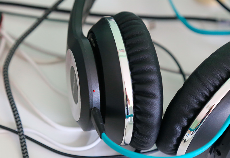 На правой чаше: управление питанием, регулировка звука, микрофон, аудиовыход, кнопка шумоподавления, индикатор шумодава и индикатор заряда.