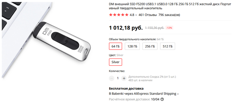 Компактная внешняя SSD-ка на 64 - 512 ГБ. Обещают скорость записи до 120 мегабайт/сек, скорость чтения до 300 мегабайт/сек. Я заказал, проверю, мне такие штуки всегда нужны. Времена внешних жестких дисков давно прошли.