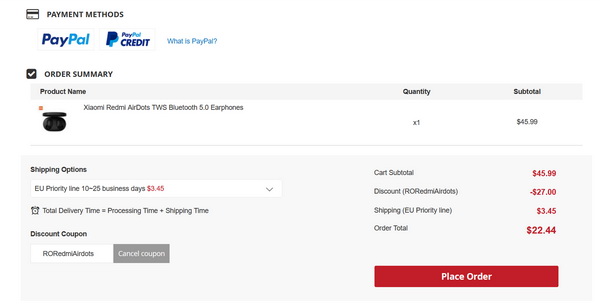 AirDots от Xiaomi Redmi можно приобрести за $45,99. Если вы живете в условиях ограниченного бюджета и не хотите тратить такие деньги на наушники, вы можете использовать код купона и получить скидку в размере 27 долларов США перед оформлением заказа.