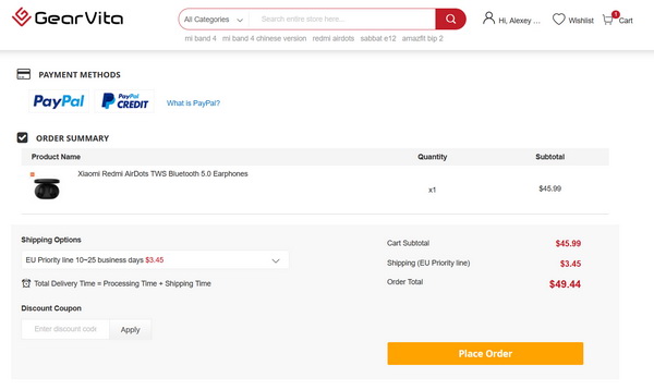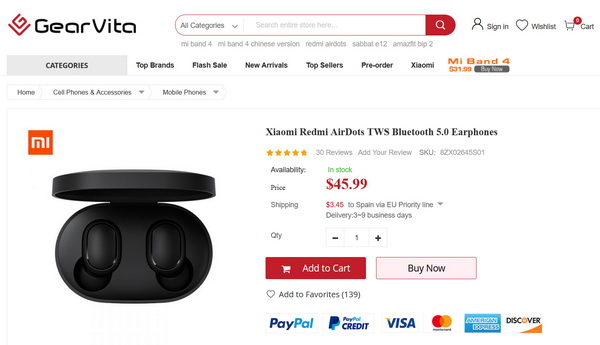 Никогда не слышал о GearVita, о наушниках этих слышал и решил проверить - мало ли, вдруг действительно скидка большая. Нажал на "нажать здесь", попал на сайт какого-то магазина GearVita. Название, видимо, должно как-то ассоциироваться с хорошо известным и вполне достойным магазином Gearbest, однако очевидно, что эта GearVita ни к какому Gearbest никакого отношения не имеет.