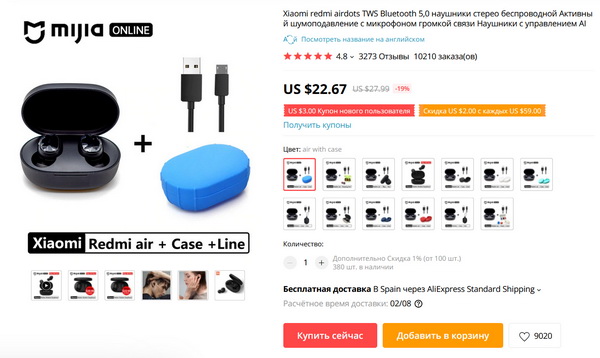 Но перед тем как покупать, разумеется, зашел на Ali и ввел поиск этих наушников. Стоят они $22.67 безо всяких купонов, причем еще и с дополнительным пластиковым кейсом желаемой расцветки. За такие деньги, пожалуй, закажу поизучать - дочка Xiaomi, выглядят наушники очень неплохо. Посмотрим, как звучат.