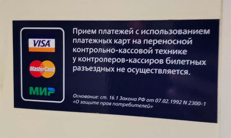 Это же совершенно гениально, умиляется Денис: нарисовать символы платежных систем и снабдить это надписью о том, что карты не принимаются, причем еще и на основании Закона РФ "О защите прав потребителей". Есть в этом нечто кафкианское.