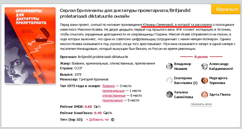 Юлианочка-то Семенова много всяких хороших книжек написала, факт, подтверждает N77a77e77. Не меньше, чем Гаррик Бичер-Стоу.