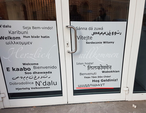 Ирина рассказала об интересном способе написать "Добро пожаловать" на русском. Берем немецкое Willkommen и пишем в русской раскладке. Смотрится красиво. Причем эта хохма у них также сработала и для греческого, и для арабского языков.
