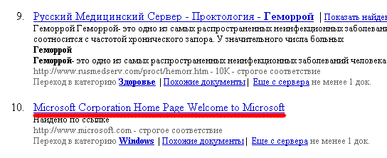 Яндекс, как всегда, продолжает выступать не только замечательным поисковиком, но и самым настоящим оракулом. Попробуйте, например, советует Майк Никулин, ввести в строке поиска слово "геморрой"... И знаете, что вы увидите на десятом месте? Да-да, тот самый сайт, который пользователям геморроя создает на порядок больше всех остальных вместе взятых! Одно только непонятно, почему он на десятом месте, а не на первом: