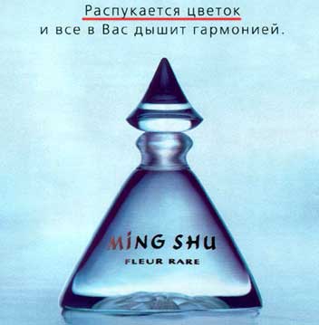 На официальном сайте "Ив Роше", как сообщает Ast, довольно своеобразные понятие о рекламе парфюма. Потому что духи "Минг Шу" рекламируются следующим образом: