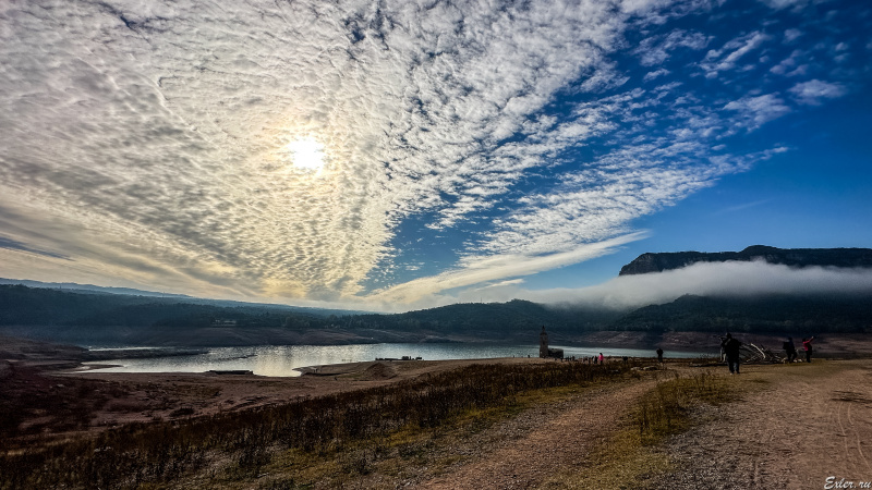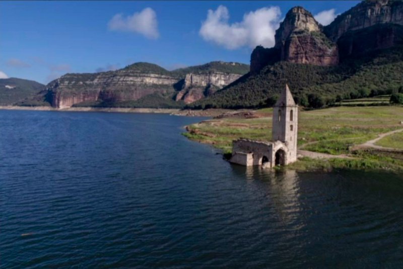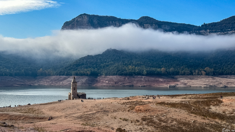 В 2022 году в Каталонии началась сильная засуха, многие водохранилища стали сильно мелеть, и в водохранилище Sau, которое снабжает водой провинции Барселона и Жирона, осталось всего 18% водных запасов, в результате чего церковь целиком оказалась на поверхности - вот я ее сфотографировал в конце 2022 года.