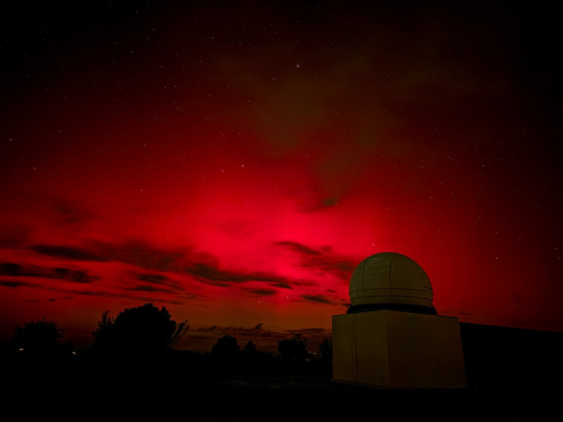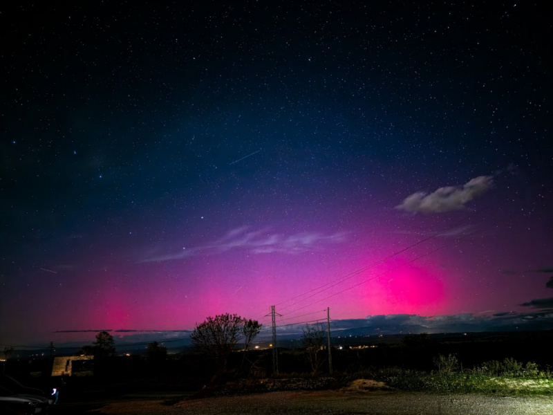 Из-за магнитных бурь в Каталонии снова можно наблюдать северное сияние. Вот как это вчера ночью выглядело в парке Astronòmic de Pujalt (фото отсюда).